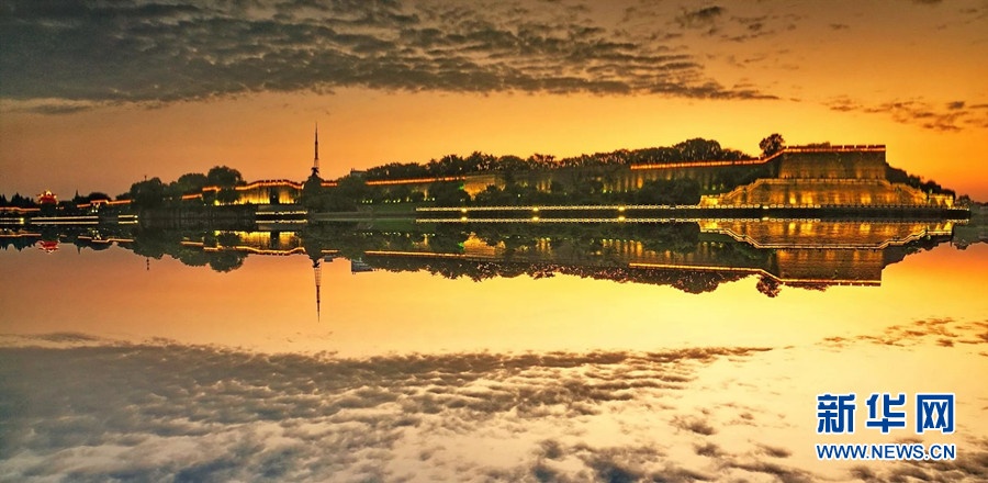 荊州古城墻沐浴在夕陽余暉里。新華網(wǎng)發(fā) 黃鳳雛 攝