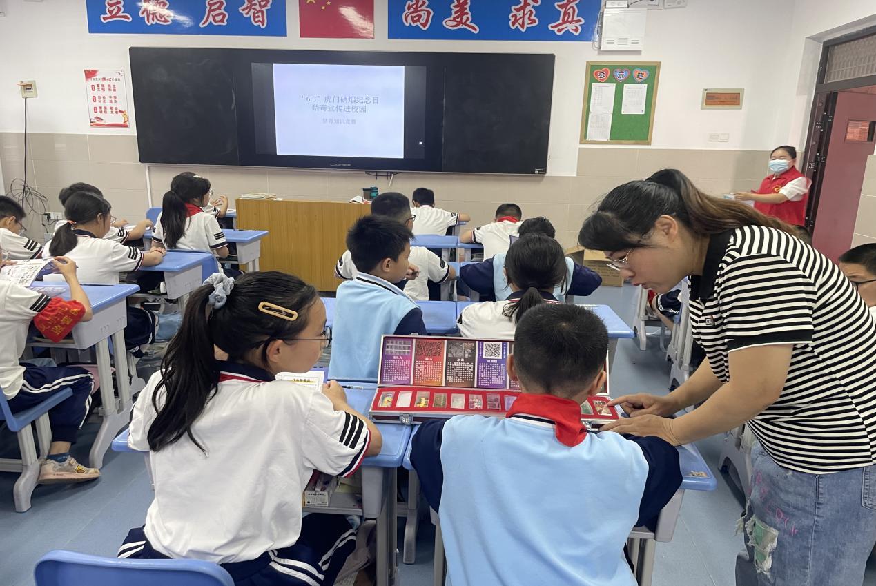 活動以虎門銷煙的歷史故事為背景,通過填寫禁毒知識試卷、展示毒品仿真模型、懸掛宣傳橫幅、派發(fā)宣傳折頁等形式,讓學生充分認識到毒品的危害。禁毒社工向學生講解了禁毒法律法規(guī)和虎門銷煙等百年禁毒史,告誡學生要遠離毒品、健康生活,擁抱美好人生,同時呼吁全體師生不忘國恥,積極投入到禁毒活動中。