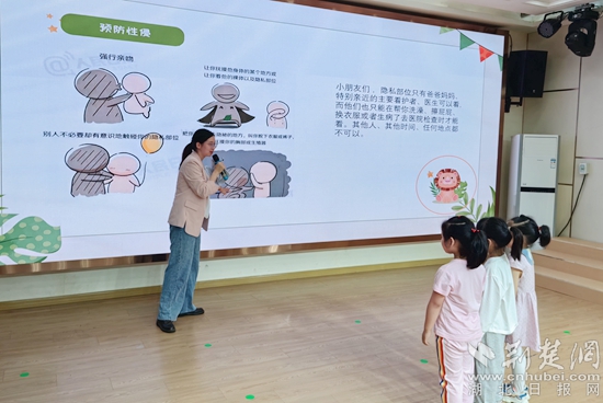 活動中,杜航用一些發(fā)生在身邊鮮活、真實的典型事例,通俗易懂、深入淺出地講解了《未成年人保護法》中“家庭保護”“學(xué)校保護”“社會保護”和“司法保護”的相關(guān)內(nèi)容。用幼兒容易理解的小視頻和故事進行防性侵、防拐騙、防溺水等方面的安全教育,機智的問答互動,讓孩子們在歡聲笑語中學(xué)到了知識,懂得了如何保護自己。