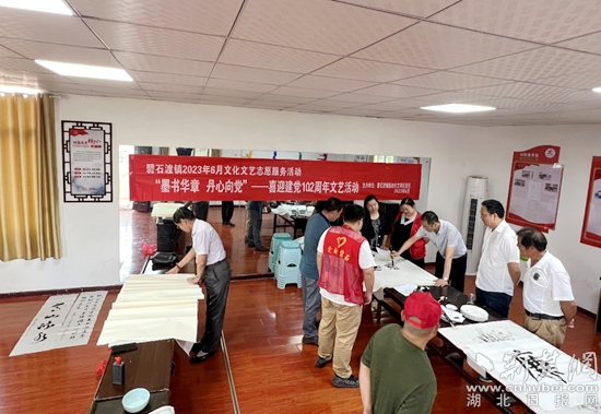 荊楚網(wǎng)(湖北日?qǐng)?bào)網(wǎng))訊(通訊員丁元中)6月9日上午,鄂城區(qū)碧石渡鎮(zhèn)開(kāi)展“墨書(shū)華章 丹心向黨——喜迎建黨102周年”書(shū)畫(huà)活動(dòng)。
