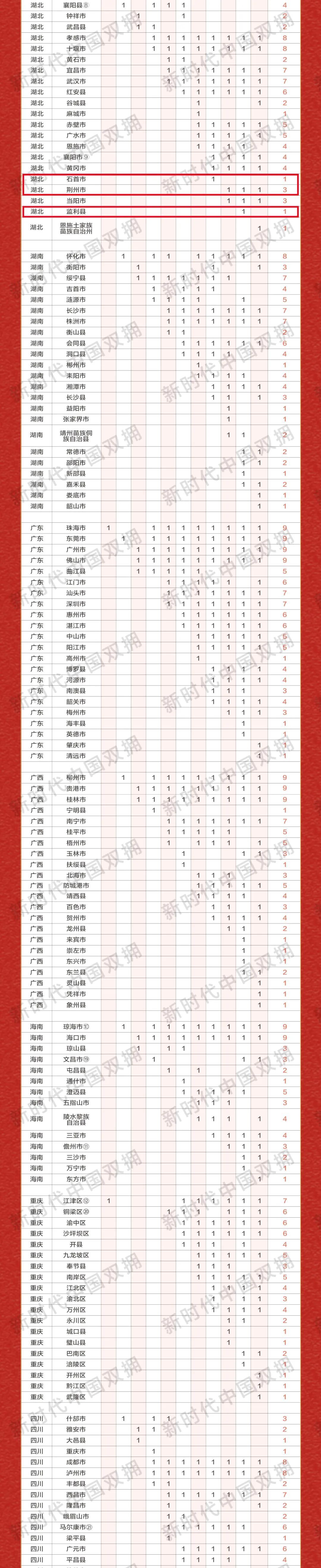 全國雙擁模范城(縣)創(chuàng)建活動自1991年開展以來,已經(jīng)進(jìn)行了11輪命名表彰,歷次受表彰城(縣)集納成表正式發(fā)布。荊州市“三連冠”上榜,石首市和監(jiān)利市也分別榜上有名。