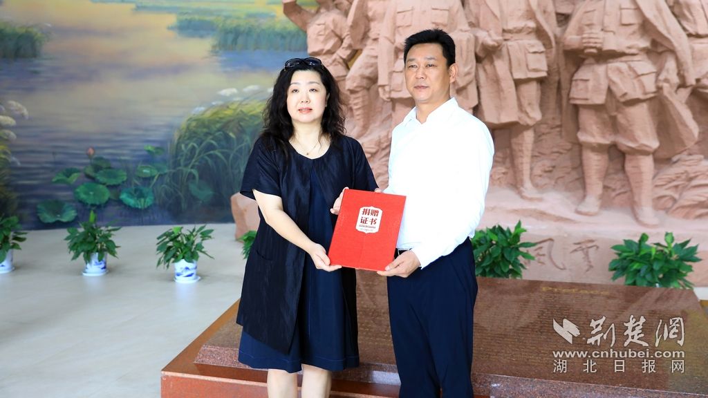 市委書記魏朝東向賀龍元帥家屬頒發(fā)了捐贈榮譽證書。