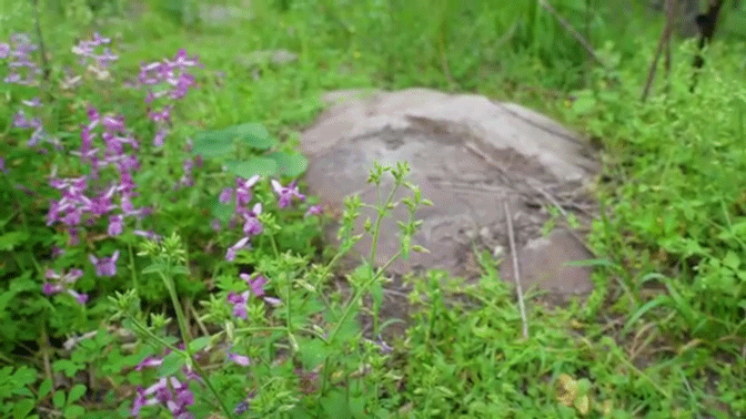 在長(zhǎng)滿青苔的石頭上玩耍