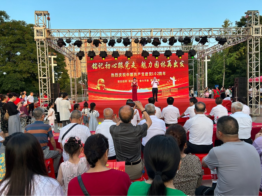 潛江新聞網(wǎng)訊(記者 王宇杰)為慶祝中國共產(chǎn)黨成立102周年,回顧黨的光輝歷程,謳歌黨的豐功偉績,6月30日晚,園林街道金陵寺社區(qū)、西堤社區(qū)、城南社區(qū)、小東門社區(qū)、南浦路社區(qū)、東方社區(qū)共同在南門河游園舉辦“銘記初心跟黨走 魅力園林再出發(fā)”——熱烈慶祝建黨102周年文藝匯演。