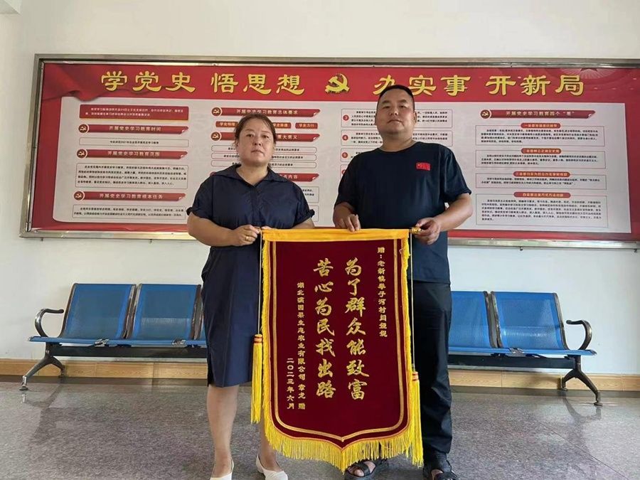 7月11日,記者從老新鎮(zhèn)獲悉,日前,湖北滿園果生態(tài)農(nóng)業(yè)有限公司法人章龍將寫有“為了群眾能致富 苦心為民找出路”的錦旗送到該鎮(zhèn)舉子河村支部書記閆婭妮手中,對(duì)舉子河村助企紓困、為民增收表示衷心感謝。