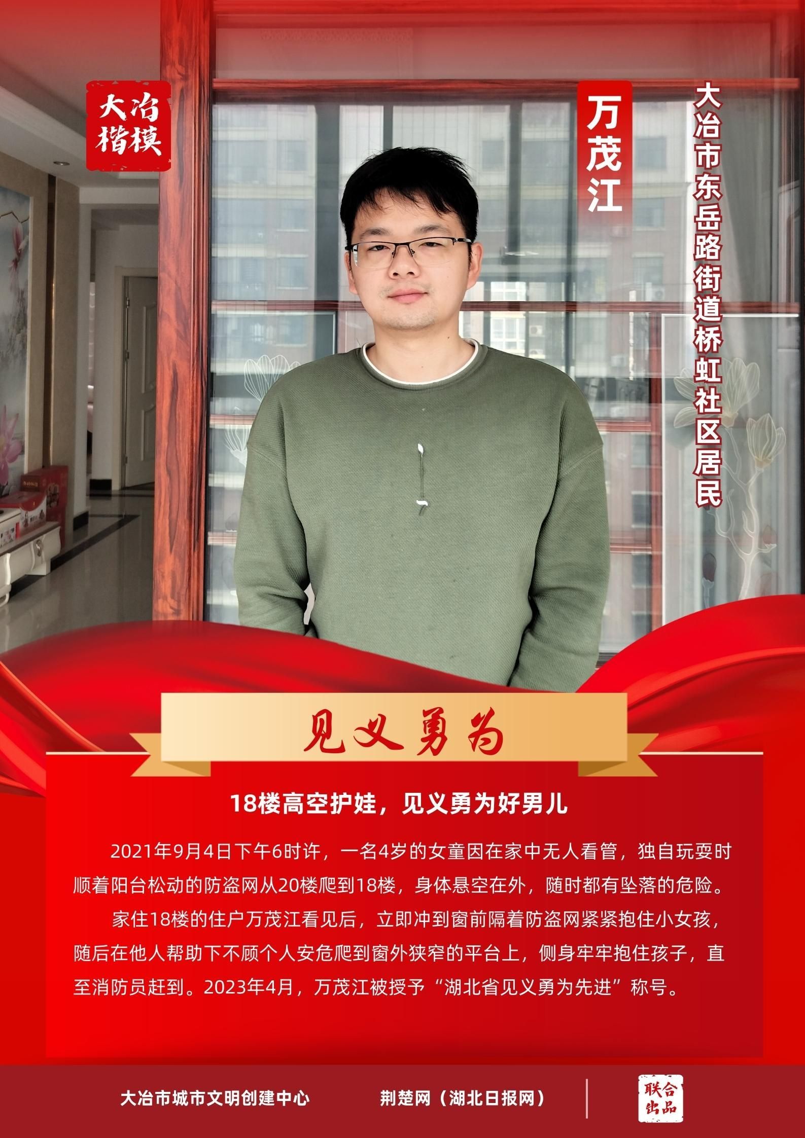 荊楚網(wǎng)(湖北日?qǐng)?bào)網(wǎng))訊(記者 左乙辰 通訊員 姚昭、羅成)以楷模為鏡,與好人同行。近日,2023上半年大冶楷模(好人)名單發(fā)布,王有文、許利、吳博等10人上榜,用各自的感人事跡溫暖了千年銅都,引領(lǐng)著城市的文明風(fēng)尚。