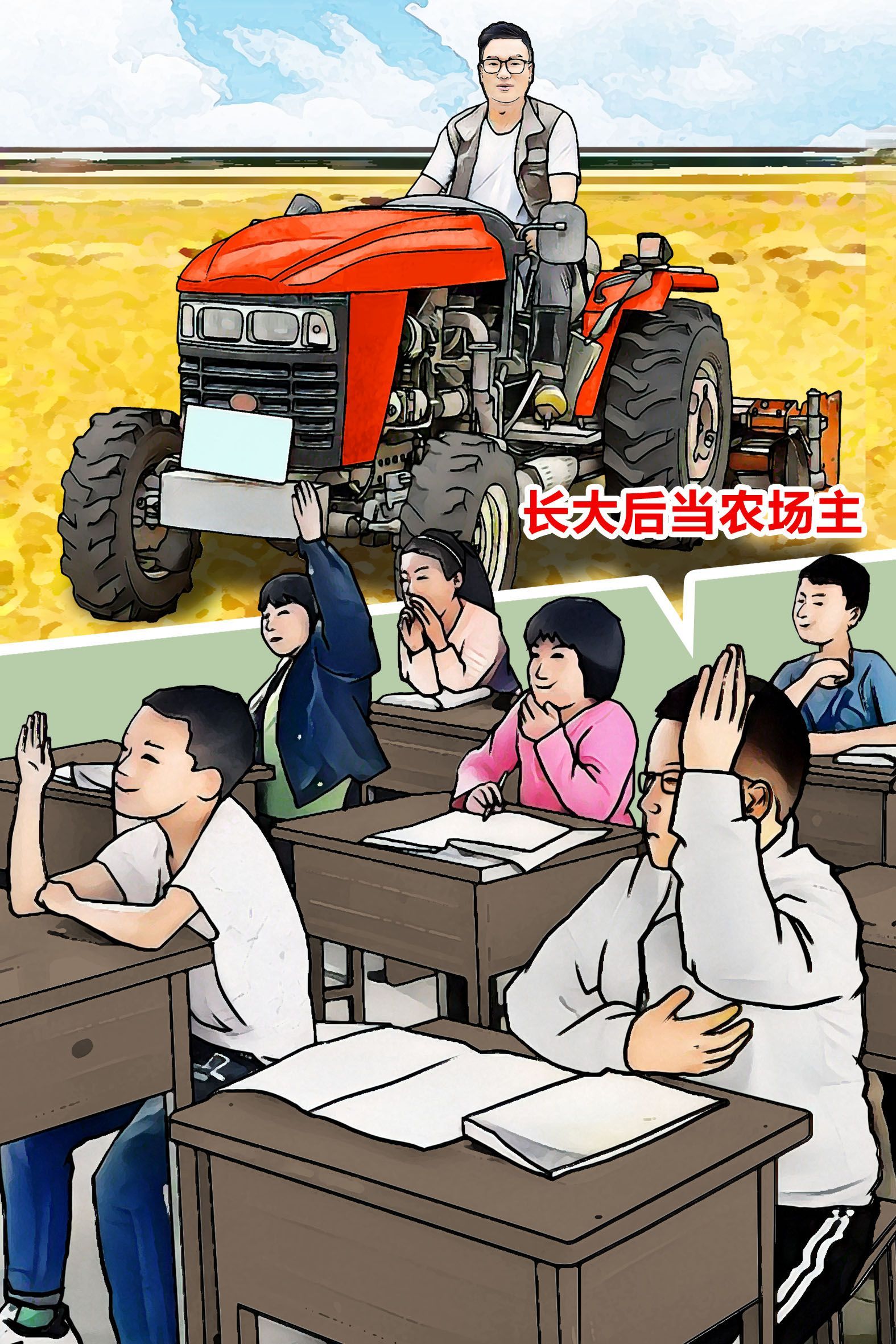 課堂上,語文老師問大家,長(zhǎng)大后的理想是什么?同學(xué)們紛紛舉手發(fā)言,有的要當(dāng)將軍,有的要當(dāng)教授,有的要當(dāng)運(yùn)動(dòng)員,有的要當(dāng)書法家……陳川則回答“長(zhǎng)大后要當(dāng)農(nóng)場(chǎng)主”。老師不僅沒有批評(píng)陳川,反而表揚(yáng)了他?!耙?dāng)新時(shí)代的農(nóng)場(chǎng)主”,一顆小小的種子從此在陳川心中埋下。