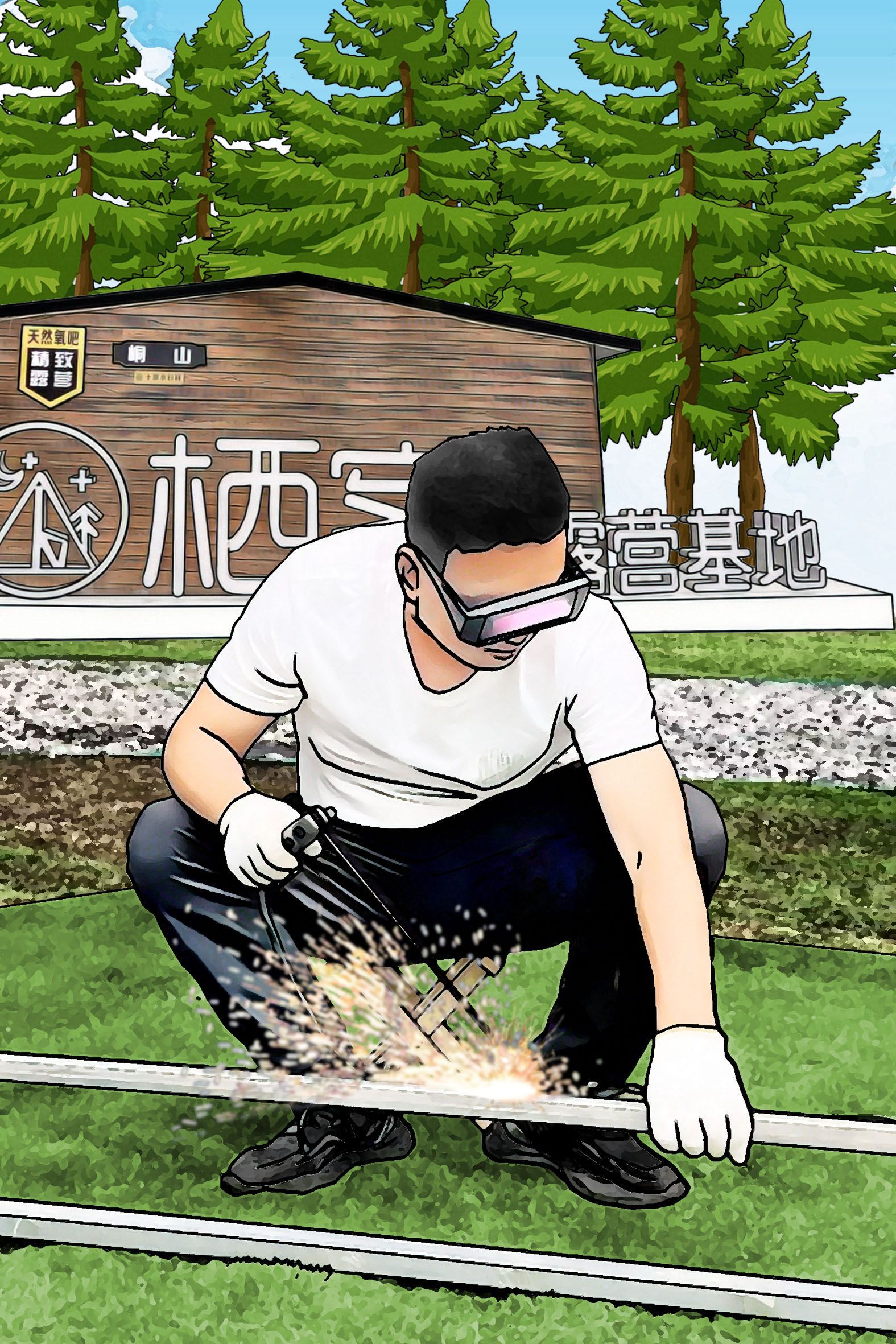 2022年8月,陳川正式與峒山村簽約,投資300萬元,在十里水杉林建設(shè)棲客露營(yíng)基地。在基地建設(shè)過程中,陳川既是老板也是員工,設(shè)計(jì)圖紙,搬運(yùn)器材,焊接構(gòu)件……幾乎什么活兒都干??吹竭@個(gè)后生如此上進(jìn),熱心的村民們紛紛前往工地幫忙。