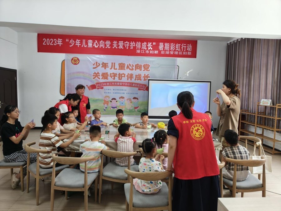 為加強(qiáng)對(duì)留守兒童的關(guān)愛,促進(jìn)留守兒童健康成長(zhǎng),自7月10日以來,后湖管理區(qū)婦聯(lián)在木剅口社區(qū)開展暑期留守兒童“彩虹行動(dòng)”,25名志愿者和5名教師為留守兒童提供托管服務(wù)。