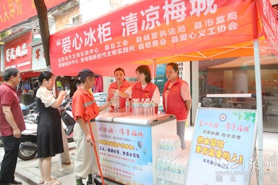 據(jù)悉,黃梅縣“愛心冰柜 清涼梅城”新時代文明實踐志愿服務(wù)活動由該縣新時代文明實踐中心牽頭發(fā)起,將從7月中旬持續(xù)開展至8月底。目前,黃梅中心城區(qū)設(shè)置的3個“愛心冰柜”志愿服務(wù)點(diǎn)均已上崗。