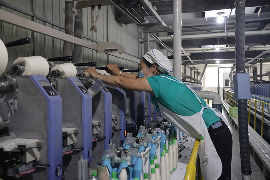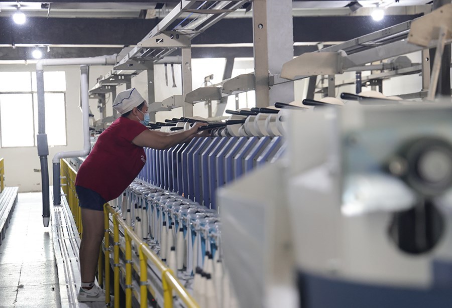 “目前生產(chǎn)規(guī)模有13萬紗錠,主要服務(wù)于我們在廣東省的下游服裝廠。截至7月,已接到訂單6000多噸。這次技改完成后,會大大降低用工成本,預(yù)計全年產(chǎn)值達到2億元。”王海明說。