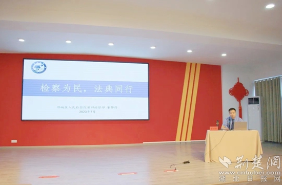 荊楚網(wǎng)(湖北日報網(wǎng))訊(通訊員丁元中)近日,由鄂城區(qū)檢察院、鄂州楚商聯(lián)合會聯(lián)合舉辦的主題為《檢察為民,法典同行》的“法治講堂進社區(qū)活動”在鄂州市鄂城區(qū)鳳凰街道濱湖社區(qū)拉開帷幕,活動吸引了60余名社區(qū)居民前來聆聽。