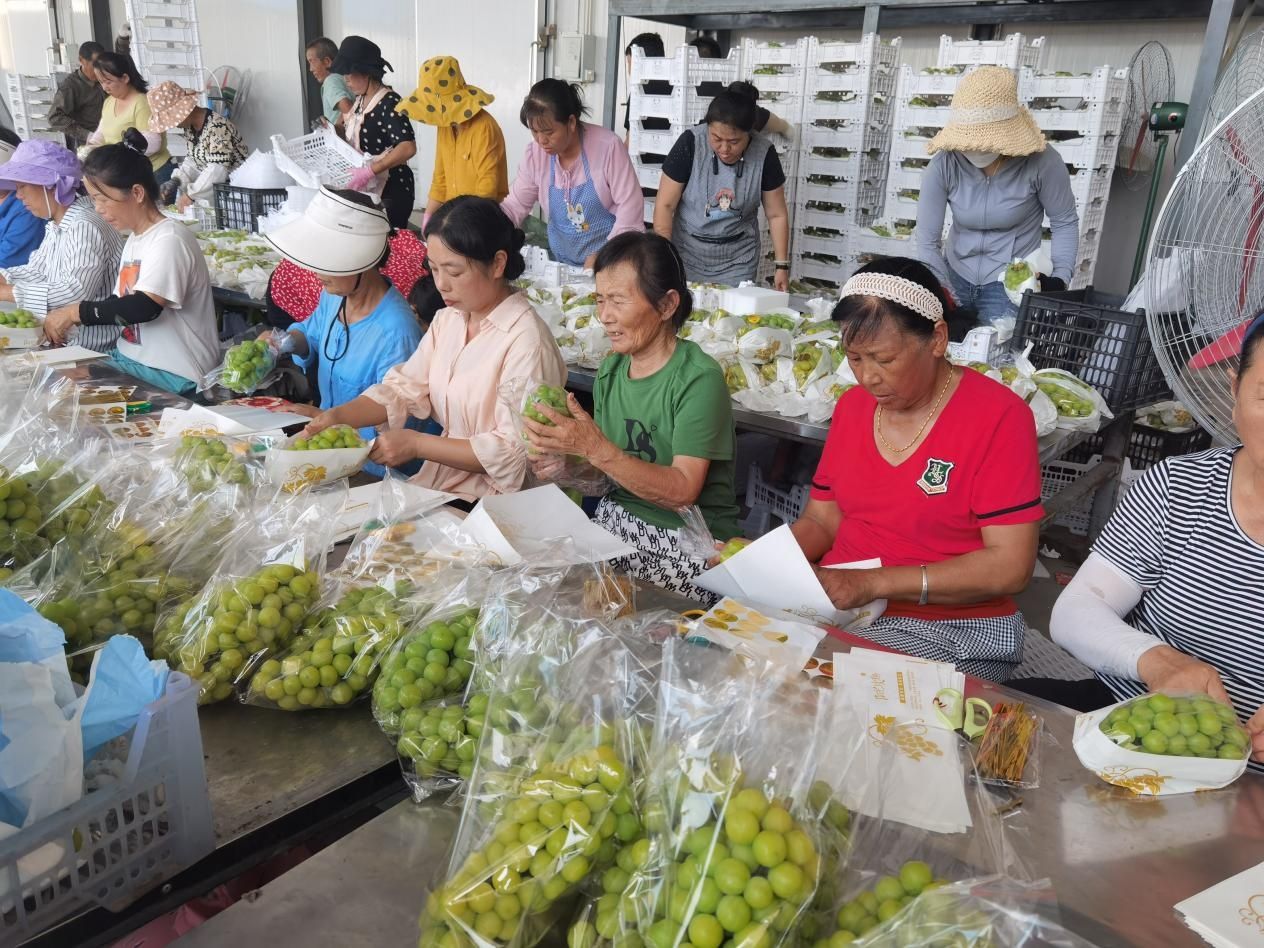 在合作社大棚內(nèi),村民謝大媽小心翼翼地將葡萄剪下放進(jìn)筐內(nèi)?!笆┓?、栽苗、覆膜,抹芽、疏果、套袋……每一個(gè)環(huán)節(jié)都不能馬虎。我們葡萄味道純正,很受歡迎,大家都搶著購買呢!”看著即將出售的陽光玫瑰,謝大媽難掩激動(dòng)之情。