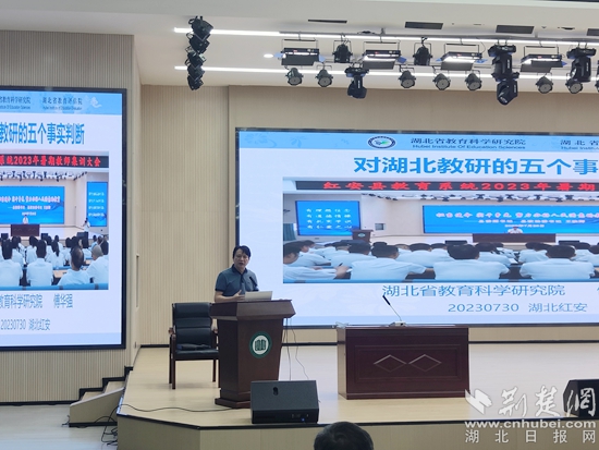 會上,湖北省教育科學(xué)研究院副院長傅華強作了題為《對湖北教研的五個事實判斷》的講座。