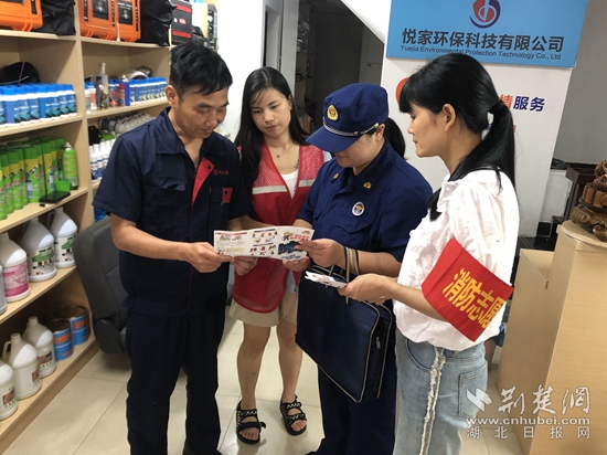 在西塞山區(qū),消防人員走進(jìn)沿街門面開展消防安全檢查宣傳。“天氣炎熱,用電量劇增,請(qǐng)不要私拉亂接線路、超負(fù)荷用電,要經(jīng)常檢查線路敷設(shè)是否完好?!毕廊藛T一邊檢查,一邊提醒商戶要經(jīng)常開展消防隱患自查自改,同時(shí)要熟練掌握滅火器、消火栓等器材使用方法。下陸區(qū)消防救援大隊(duì)結(jié)合夏季高溫防火特點(diǎn),整合戶外大屏、社會(huì)單位LED屏幕等社會(huì)資源循環(huán)播放夏季防火提示公告、高溫防火提示,提醒廣大人民群眾規(guī)范用火、用氣、用電。