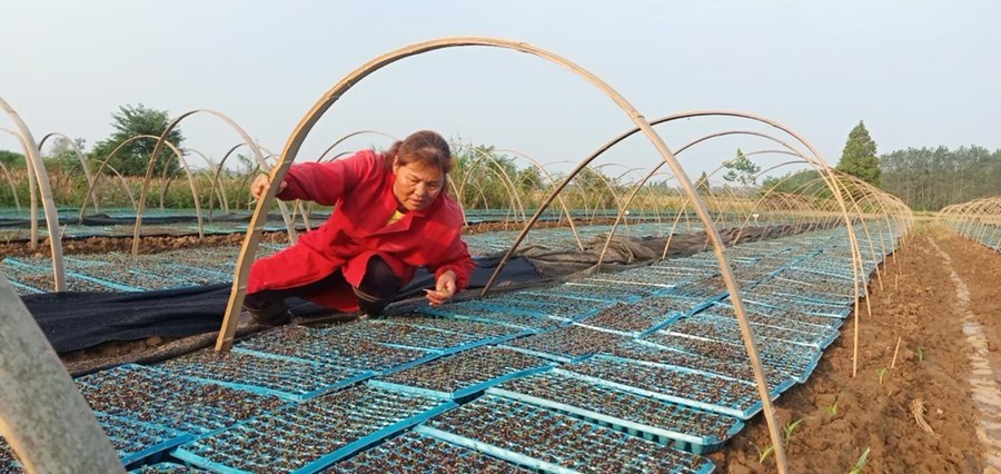 一周前播種的西蘭花種子,已長出兩片小葉,再過一段時(shí)間就可以移栽了。8月15日,記者在漁洋鎮(zhèn)拖船埠村陳先芝的西蘭花基地見到她時(shí),她正在查看西蘭花幼苗長勢(shì)。