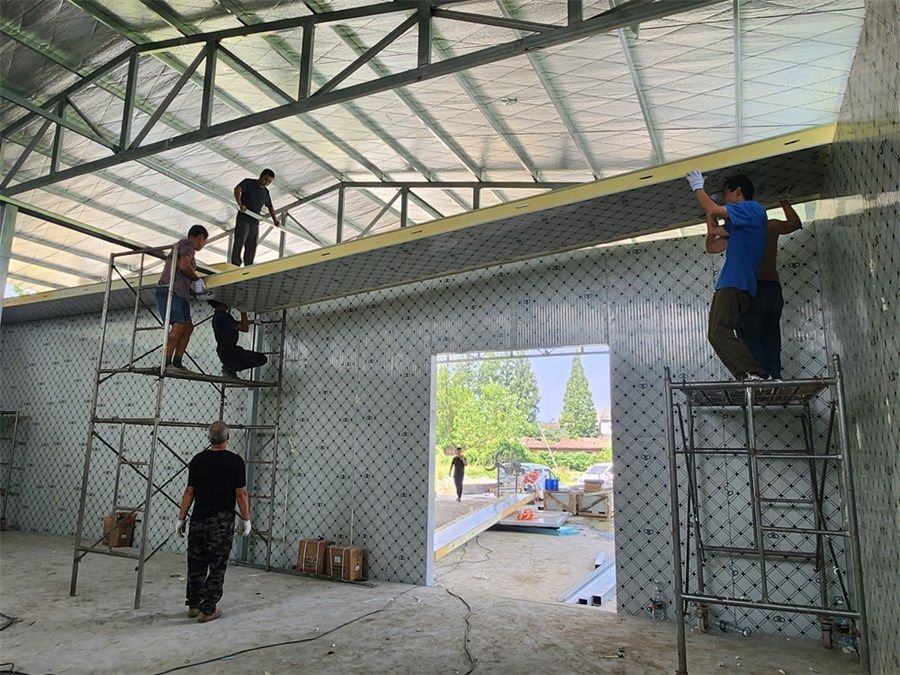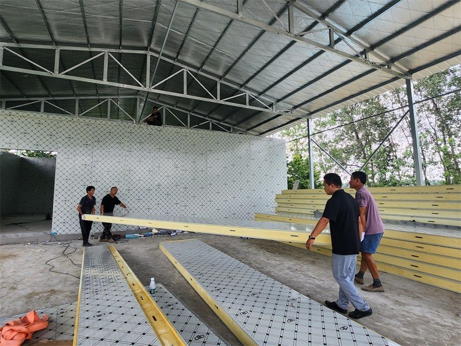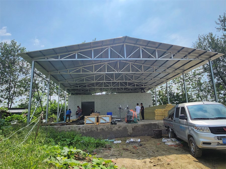 8月16日,記者在途徑周磯街道永豐村時(shí)看到,一座田間冷庫初具雛形,工人們正在安裝庫體,現(xiàn)場一片繁忙景象。
