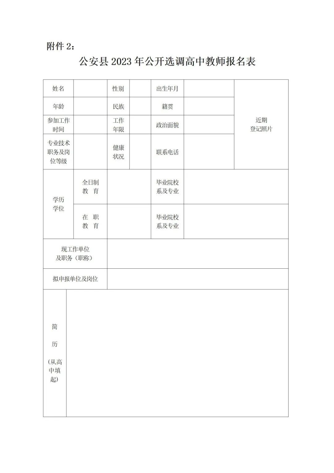 2.公安縣2023年公開選調(diào)高中教師報(bào)名表
