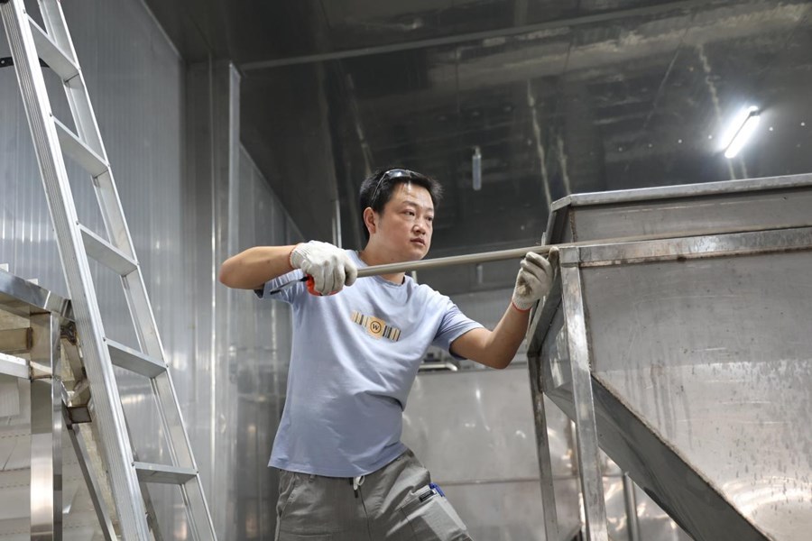 “隨著小龍蝦加工生產(chǎn)期結(jié)束,我們在原有基礎(chǔ)上對魚糜車間設(shè)備進(jìn)行安全性能和機(jī)器自動化智能化升級。目前我們共有6億元的魚糜訂單,正在安裝新設(shè)備,舊設(shè)備已被移除?!痹摴矩?fù)責(zé)人陳清介紹。
