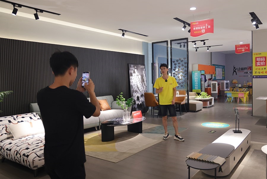 “我們的產(chǎn)品都是可定制化的,您看中款式后,告訴我們需要的尺寸,我們會根據(jù)客戶需求進行生產(chǎn)?!痹撈髽I(yè)員工打開手機直播間,一邊展示產(chǎn)品,一邊向廣大網(wǎng)友耐心講解?!肮S+展廳”形式的優(yōu)勢在于,從設計制作到展示搭配一站式呈現(xiàn),不僅質(zhì)量透明,價格相比賣場也更實惠。