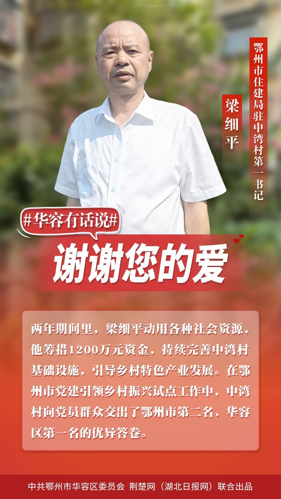 華容無所有,聊贈一顆心。千恩萬謝,訴不盡離別衷腸;千言萬語,道不盡感激之情。20多萬華容百姓捎來心里話:“繼續(xù)駐村同志,攜手并肩前行;駐村結(jié)束返崗?fù)?,常回家看看,華容是您的第二故鄉(xiāng),是您永遠(yuǎn)的家!”