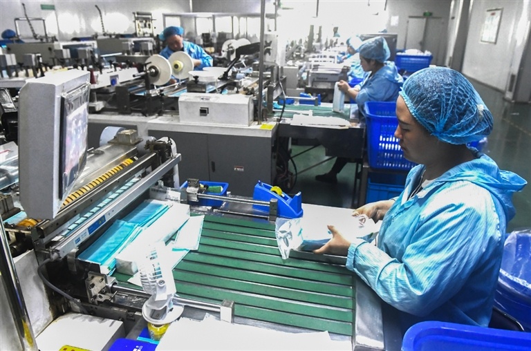 8月29日,位于后湖管理區(qū)的湖北福好醫(yī)療用品有限公司員工,為國外客戶趕制醫(yī)用敷料產品。該公司生產的醫(yī)用敷料、醫(yī)療包裝袋卷、干燥劑外包裝袋等產品俏銷美國、英國、德國、法國、加拿大、日本、泰國等20多個國家。今年以來,已實現銷售收入7000多萬元,預計到年底可實現銷售收入1.2億元。 特約記者 田永祥