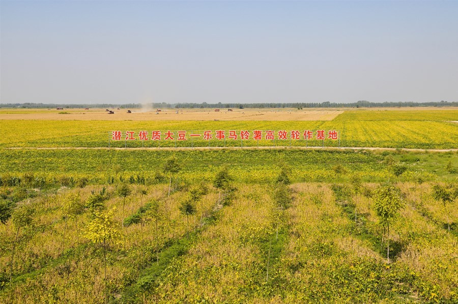 8月31日,走進(jìn)位于竹根灘鎮(zhèn)沙街村的潛江優(yōu)質(zhì)大豆-樂事馬鈴薯高效輪作基地,耳畔傳來隆隆機(jī)聲,農(nóng)民駕駛的15臺收割機(jī)正在田間收獲“鄂豆10號”,7000畝優(yōu)質(zhì)大豆將在一周內(nèi)完成收割,并銷往仙桃市的合作商。