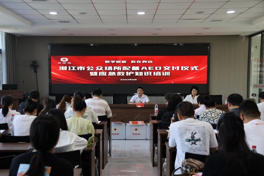 9月1日上午,在園林街道辦事處雅苑社區(qū),潛江市舉辦公共場所配備AED(自動體外除顫器)交付儀式,標(biāo)志著潛江市首批公共場所AED正式投入使用。