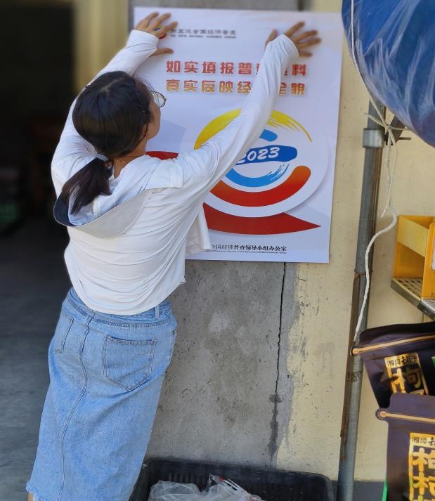 當(dāng)好“宣傳員”。普查員在轄區(qū)張貼第五次全國(guó)經(jīng)濟(jì)普查宣傳海報(bào),廣泛宣傳經(jīng)濟(jì)普查的目的、意義和作用,不斷擴(kuò)大知曉度,增進(jìn)社區(qū)商戶(hù)對(duì)經(jīng)濟(jì)普查工作的理解和支持。