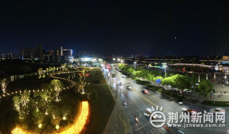 航拍鏡頭下,東門周邊區(qū)域的夜色璀璨奪目、層次分明,東門賓陽樓、護(hù)城河、金鳳廣場、軸承廠公園的夜景連成一片,美不勝收。軸承廠公園亮化后,不僅為市民提供了更加優(yōu)美、舒適的生活環(huán)境,還對提升城市形象起到了積極作用,進(jìn)而帶動荊州夜經(jīng)濟(jì)和旅游產(chǎn)業(yè)的發(fā)展。