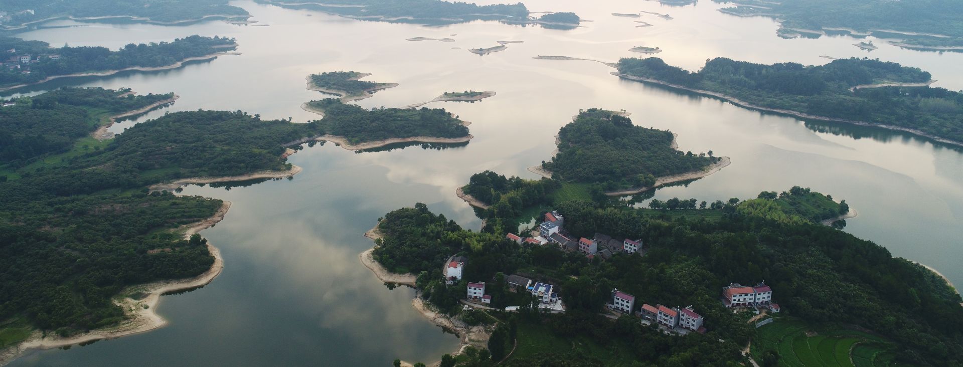 明山水庫,煙波浩渺,蜿蜒曲折,其狀如龍,栩栩如生,群山環(huán)抱,風景秀麗。