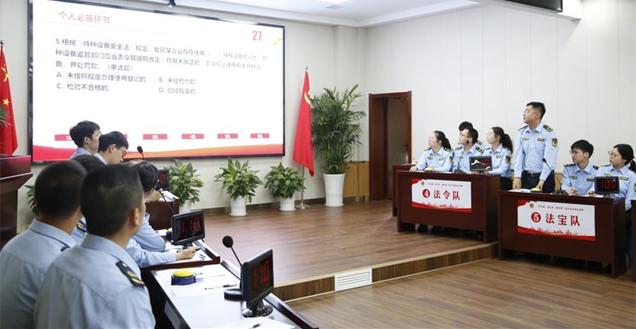 據(jù)了解,此次知識競賽的主題是綜合業(yè)務(wù),涵蓋執(zhí)法稽查、質(zhì)量監(jiān)督、特設(shè)安全、知識產(chǎn)權(quán)等內(nèi)容,共有來自監(jiān)管所、綜合執(zhí)法支隊(duì)等單位的6支代表隊(duì)參賽。