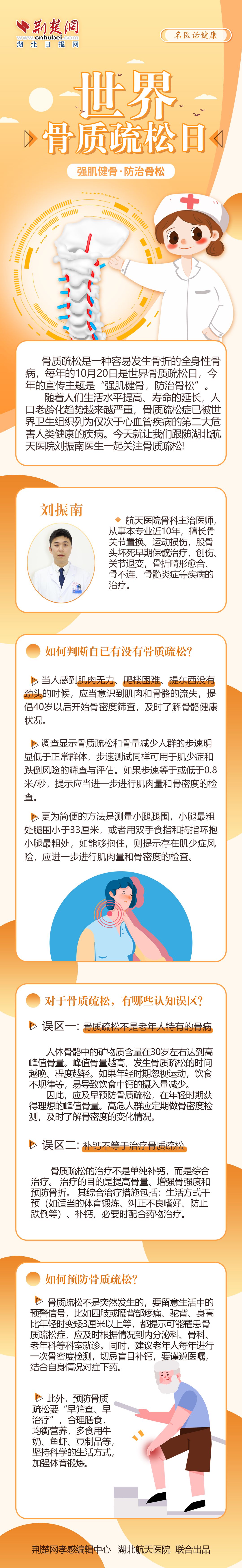隨著人們生活水平提高、壽命的延長(zhǎng),人口老齡化趨勢(shì)越來越嚴(yán)重,骨質(zhì)疏松癥已被世界衛(wèi)生組織列為僅次于心血管疾病的第二大危害人類健康的疾病。今天就讓我們跟隨湖北航天醫(yī)院劉振南醫(yī)生一起關(guān)注骨質(zhì)疏松!