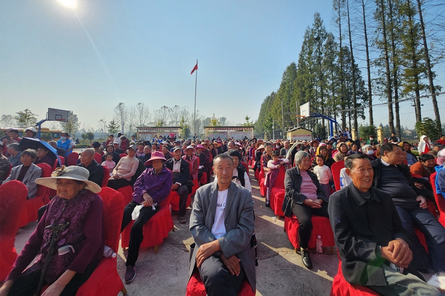 演出開始前,鄉(xiāng)賢代表上臺發(fā)言,對村里老人送去真摯的祝福。隨后護(hù)城村鑼鼓隊(duì)帶來了鏗鏘有力的演奏,護(hù)城村廣場舞隊(duì)帶來舞蹈《歌唱祖國》,百花花鼓劇團(tuán)表演了深受老年朋友喜愛的戲曲小品《八斤肉》……一個(gè)又一個(gè)精心編排的節(jié)目輪番上演,匯成了一場具有地方特色的鄉(xiāng)村文化盛宴。整場演出都洋溢在祥和喜慶熱鬧的氣氛中。