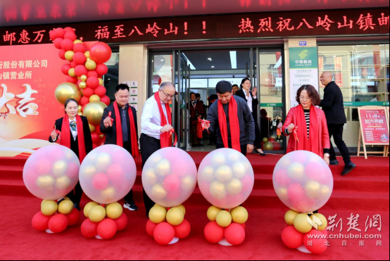 荊州市郵政分公司總經(jīng)理潘彭恩、荊州市荊州區(qū)八嶺山鎮(zhèn)黨委副書記何子康出席了此次開業(yè)儀式,并一同為郵儲(chǔ)銀行八嶺山鎮(zhèn)營(yíng)業(yè)所揭牌。