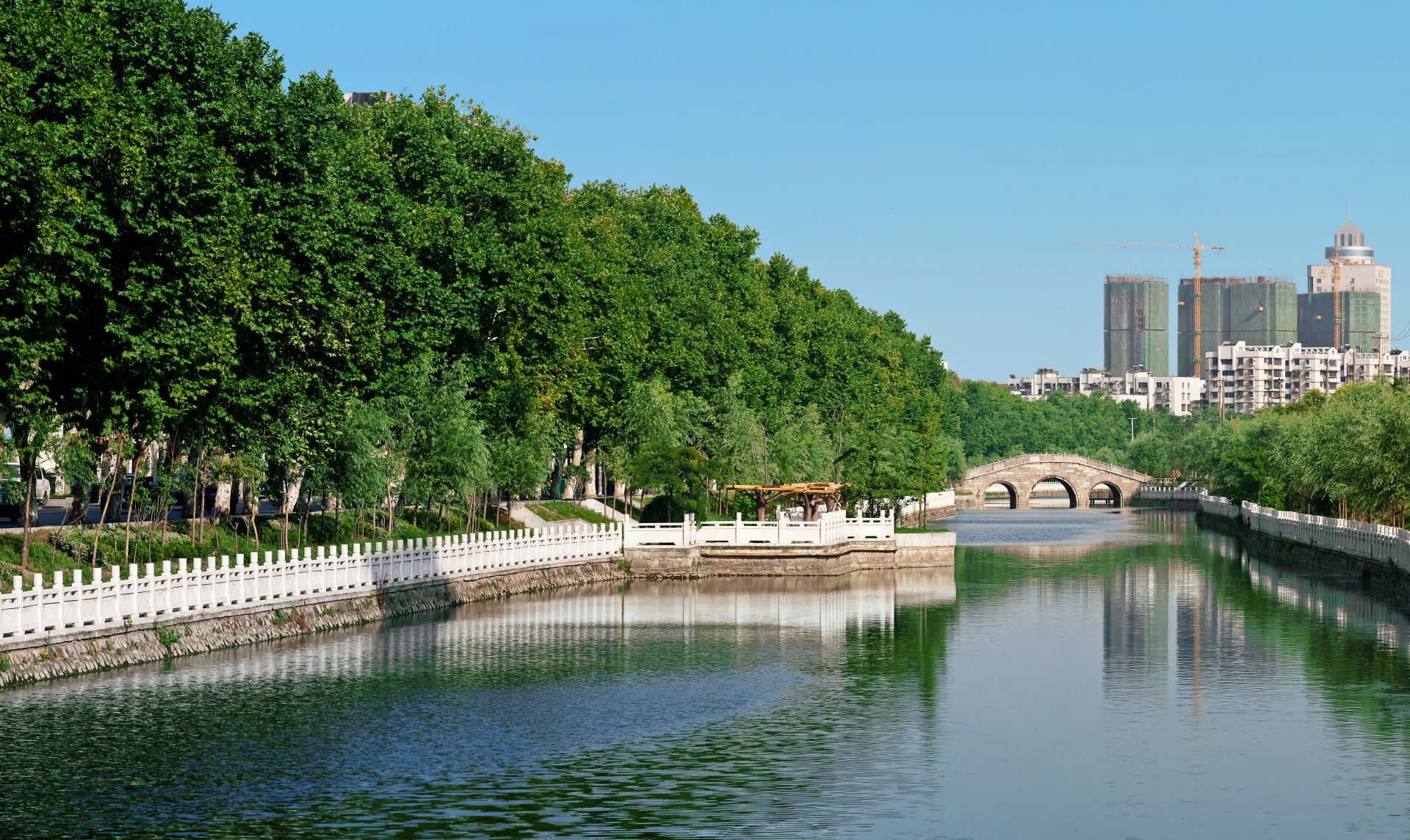 河中的增氧設(shè)備和浮生水草凈化著水質(zhì);岸邊的警示牌和救生設(shè)備守護(hù)著游人的安全;坡邊綠色的植被和花草,郁郁蔥蔥,為古城增添了不少亮色。