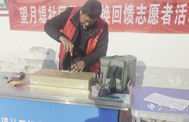 禹王街道望月堤社區(qū),除了積分兌換活動外,還組織社區(qū)“銀發(fā)維修”志愿服務(wù)隊,為居民們提供家用電器免費便民維修服務(wù)?,F(xiàn)場居民從家中拿來電風扇、電熱水壺、電飯煲、吹風機等小家電讓維修人員“會診”,各種小家電擺滿了服務(wù)臺。