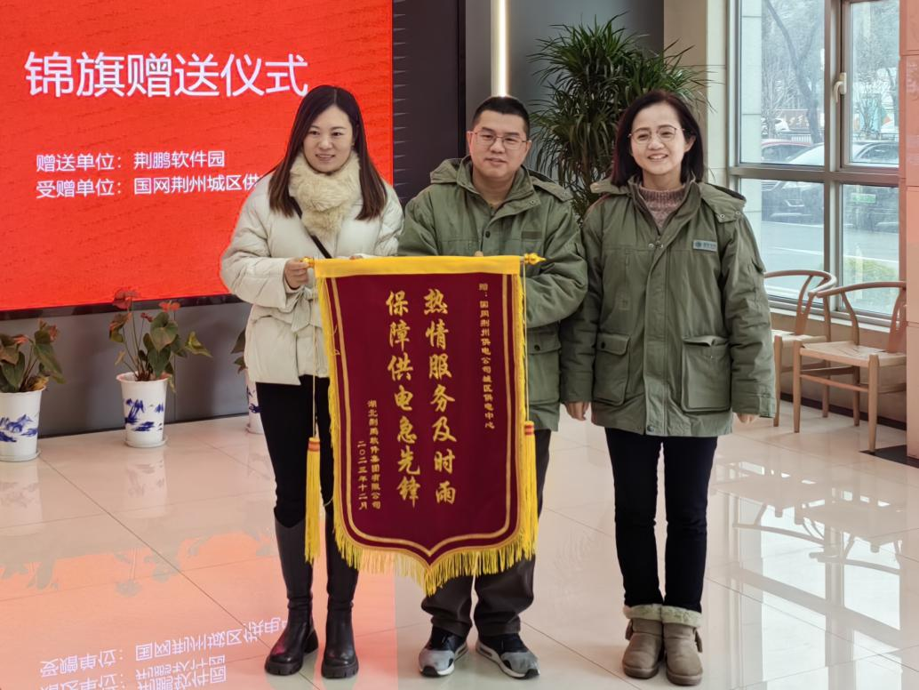 荊楚網(wǎng)(湖北日報(bào)網(wǎng))訊(通訊員孫冰 袁慧迪)12月21日,湖北荊鵬軟件集團(tuán)有限公司將一面印有“熱情服務(wù)及時(shí)雨 保障供電急先鋒”字樣的錦旗送到國網(wǎng)荊州城區(qū)供電中心,并對該中心優(yōu)質(zhì)高效的電力搶修服務(wù)表示感謝。