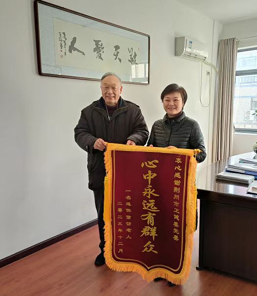 荊楚網(wǎng)(湖北日?qǐng)?bào)網(wǎng))訊(通訊員 楊光 胡少構(gòu))12月22日上午,退休老人胡憲忠將一面寫(xiě)著“心中永遠(yuǎn)有群眾”的錦旗送到荊州市衛(wèi)健委黨組書(shū)記徐莉的手中,對(duì)徐莉書(shū)記的親自督辦、熱情周到的服務(wù)表示贊許與感謝。