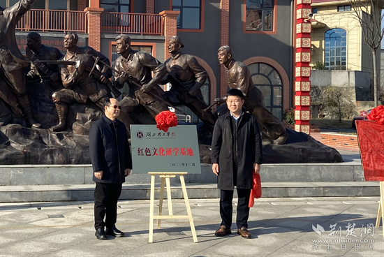 當天上午,湖北理工學院黨委副書記李金奇和大冶市委宣傳部副部長劉玉強,共同為湖北理工學院紅色文化研學基地揭牌。湖北理工學院馬克思主義學院書記、院長吳鳳庭和大箕鋪鎮(zhèn)黨委書記柯夢兵,共同為湖北理工學院“大思政課”教育教學基地揭牌。