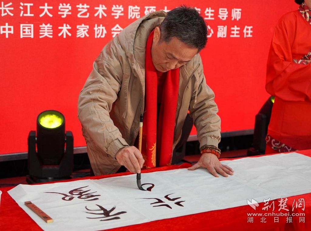 除了現(xiàn)場推出的集郵珍品,更讓眾人大飽眼福的是,國家一級(jí)美術(shù)師、荊州市美術(shù)家協(xié)會(huì)主席鄭啟雄以楚簡書法現(xiàn)場為荊州郵政題字一幅;中國首屆刺繡藝術(shù)家、湖北省級(jí)非遺漢繡代表性傳承人張先松將剪紙藝術(shù)與中華傳統(tǒng)龍文化的完美結(jié)合,現(xiàn)場展示剪龍技藝。