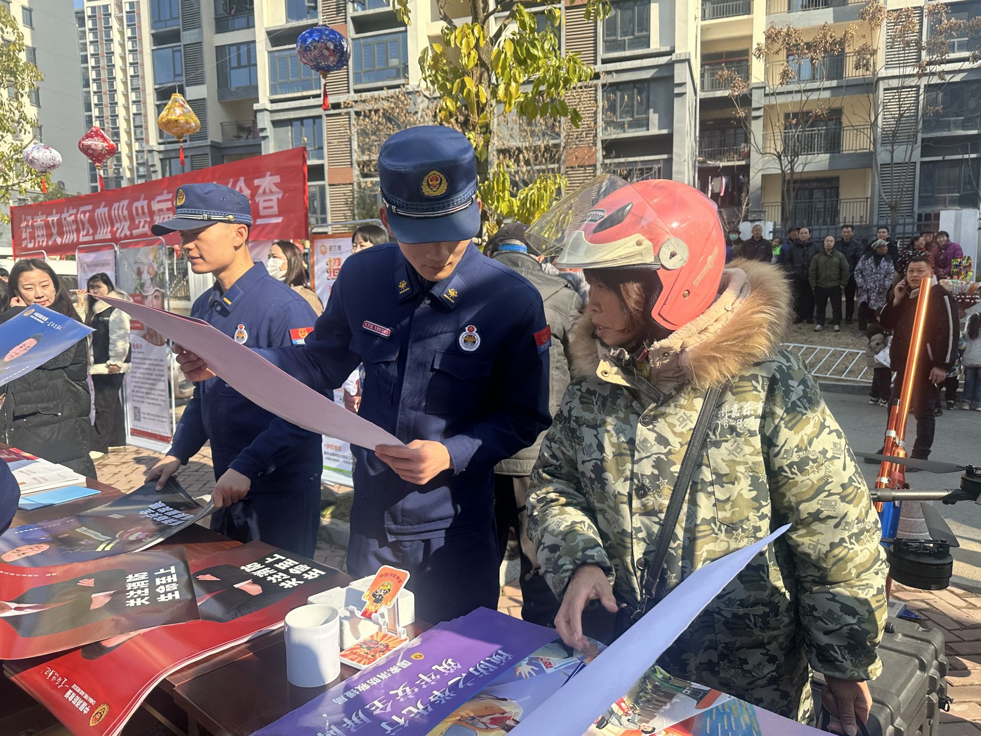 現(xiàn)場發(fā)放消防宣傳海報 記者 喻昭陽 攝
