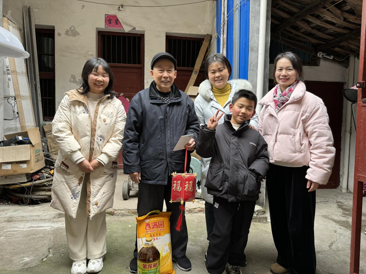 開班儀式結(jié)束后,在場領(lǐng)導(dǎo)與社區(qū)工作人員、小小志愿者一起走訪探望轄區(qū)高齡、困境、留守老人,與老人親切交談,了解大家的生活狀況和需求,送上生活物資,小小志愿者則為老人送上中國結(jié)和手工賀卡,表達新春節(jié)日祝福,讓困境老人在寒冷的冬天感受到政府和社會的溫暖關(guān)懷。