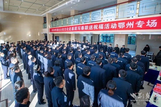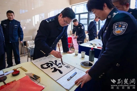 荊楚網(wǎng)(湖北日?qǐng)?bào)網(wǎng))訊(通訊員 王廳 張宏斌)迎春納福送春聯(lián),翰墨飄香暖警心。1月23日上午,省廳政治部、湖北公安文聯(lián)組織全省公安機(jī)關(guān)書(shū)法藝術(shù)家走進(jìn)鄂州市公安局,開(kāi)展寫春聯(lián)送祝?;顒?dòng)。