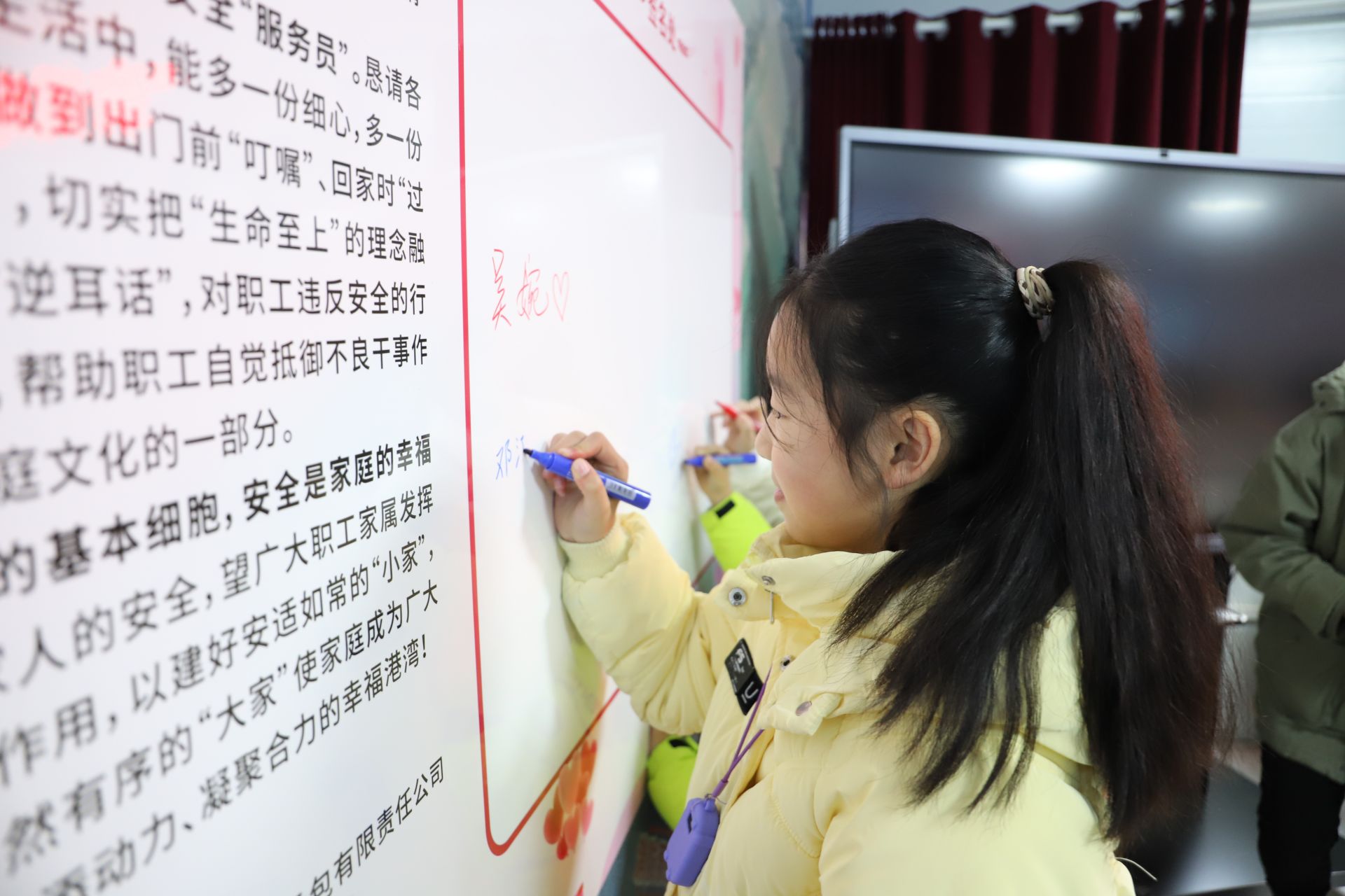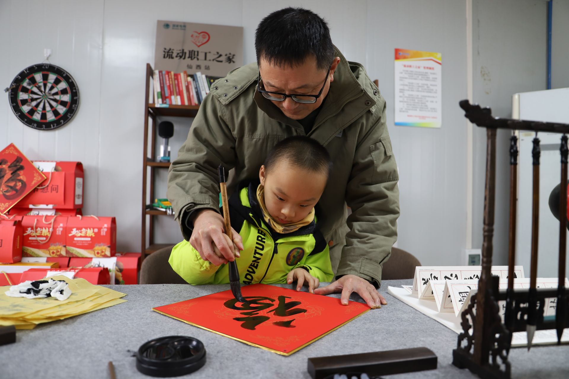 荊州供電公司工會(huì)還為職工家屬子女送上各類學(xué)習(xí)書籍,與職工家屬一起現(xiàn)場(chǎng)潑墨,寫福字、送平安,用飽含深情的筆墨,創(chuàng)作出一幅幅有創(chuàng)意有深情的書法作品,營(yíng)造了“親情助安、文化潤(rùn)安”的氛圍。