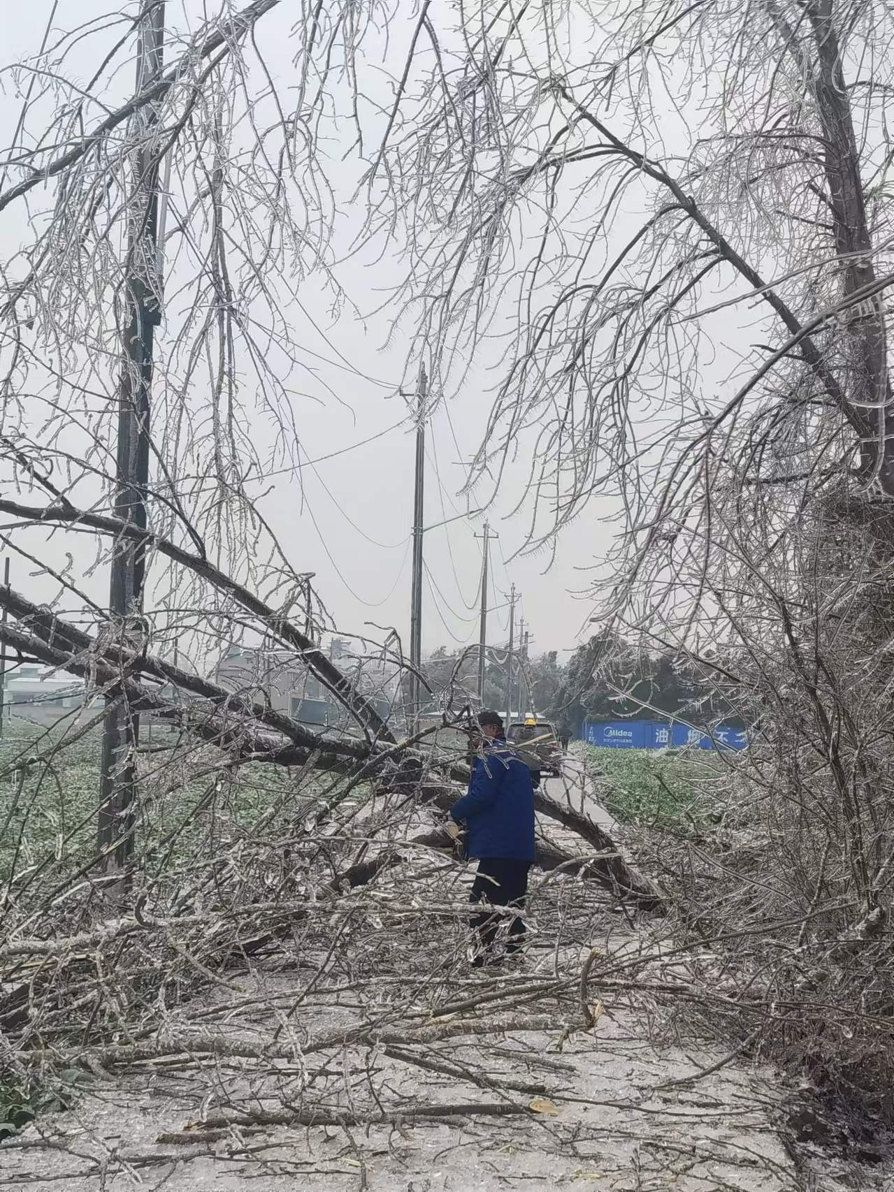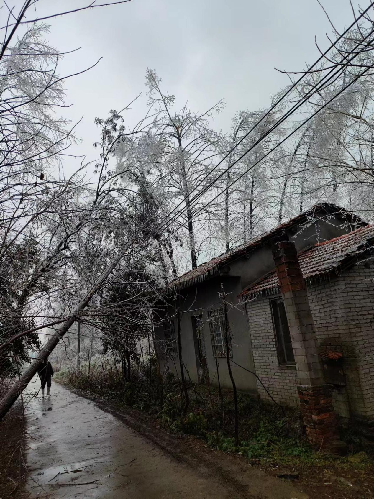經(jīng)過巡視,他們迅速確定了故障原因,西湖村3個臺區(qū)30余根低壓電桿和上級10千伏線路,共計2.1公里線路因覆冰及覆冰導致的樹木倒塌引起故障。