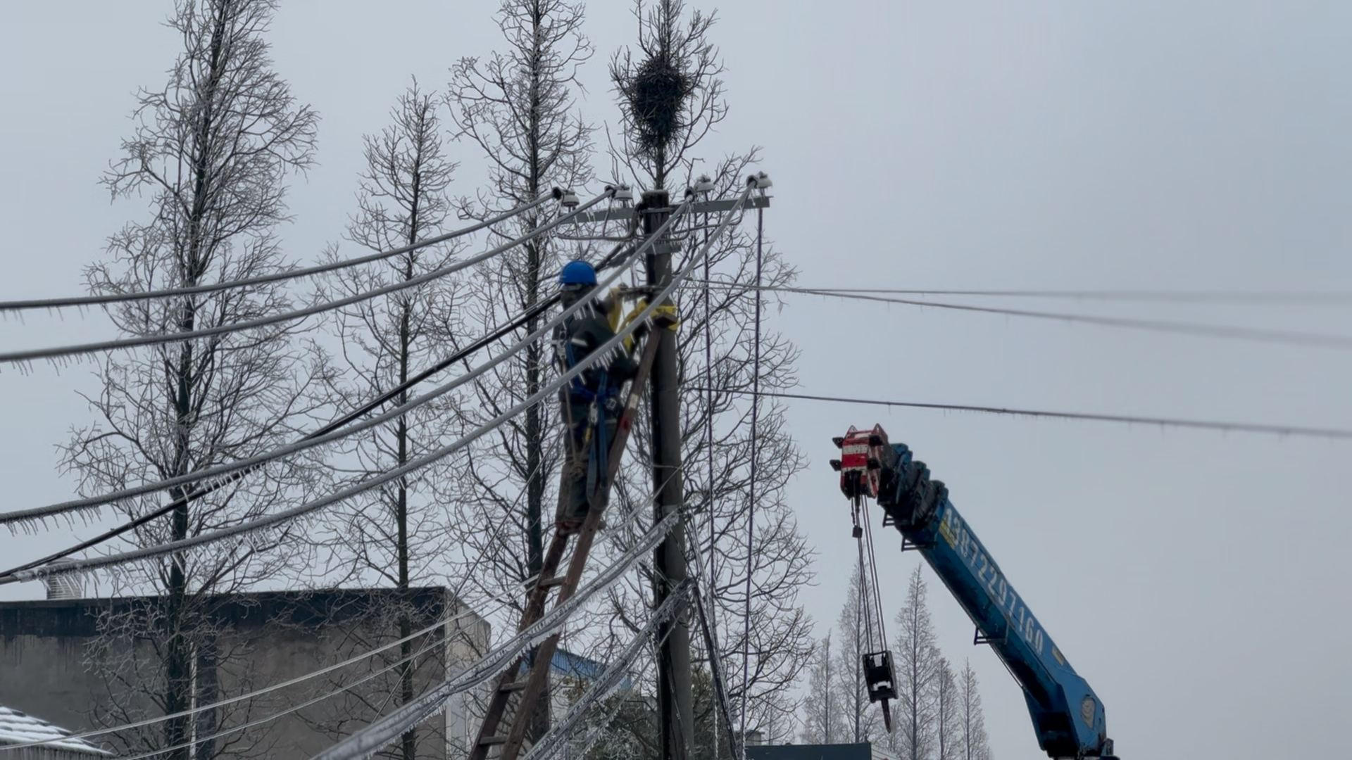 風雪越來越大,凜冽的寒風夾雜著冰粒唰唰地打在搶修人員的身上,讓人恍若身處北方的嚴寒,但心中對于盡快幫助居民恢復(fù)電力供應(yīng)的渴望,讓搶修隊員們顧不上掛在眉毛和帽子上的冰霜,以及凍得僵硬的四肢,分秒必爭地開展應(yīng)急搶修工作。