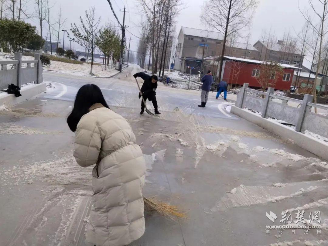 為盡快消除路面結(jié)冰,盡量減少雨雪天氣對群眾出行的影響,王場鎮(zhèn)緊急協(xié)調(diào)中石化江漢油田公司鹽化總廠捐贈120袋共計6噸的工業(yè)融雪鹽,并用于王場鎮(zhèn)各村(社區(qū))主干道、橋梁、園區(qū)道路的除冰融雪工作。鎮(zhèn)機關(guān)干部、鎮(zhèn)直單位、各村(社區(qū))迅速啟動應(yīng)急預(yù)案,采用“機械+人力”協(xié)作方式,清除路面積雪,全力做好保暢通、護(hù)平安、除隱患等各項工作,以實際行動守護(hù)人民群眾生命財產(chǎn)安全。