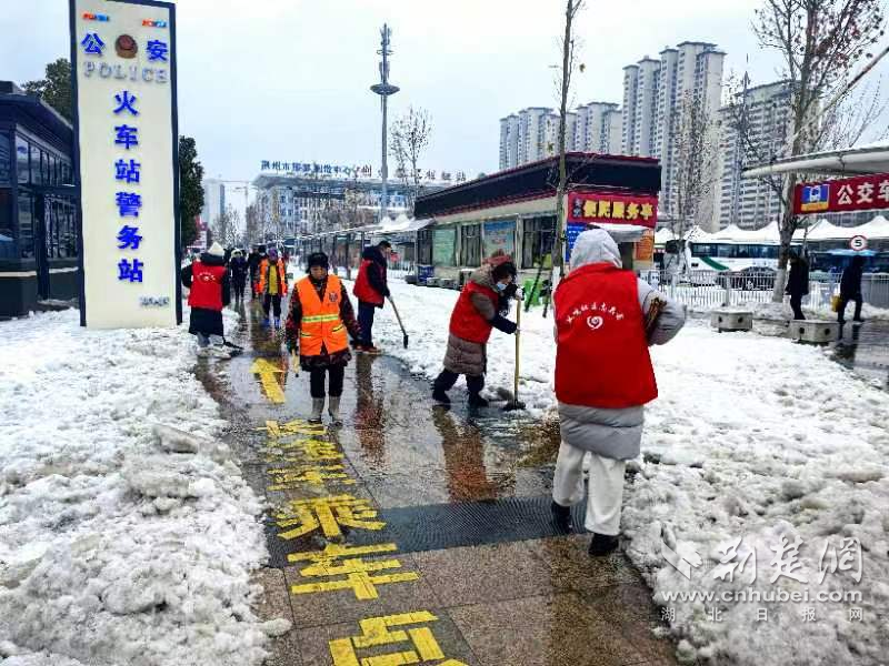 強(qiáng)化應(yīng)急處置,保障出行通暢。由于荊州火車站、荊州客運(yùn)樞紐站等重要交通樞紐處于郢城鎮(zhèn)轄區(qū)內(nèi),連日來氣溫較低并且持續(xù)降雪,站前廣場冰雪厚度達(dá)到10多厘米,道路上的積雪清理起來十分困難。時(shí)間緊任務(wù)重,郢城鎮(zhèn)迅速組織了40名干部群眾在荊州火車站、荊州客運(yùn)樞紐站進(jìn)行除冰作業(yè)。同時(shí),郢城鎮(zhèn)還組織了30名基干民兵巡邏并排查安全隱患,全力保障乘客安全出行。