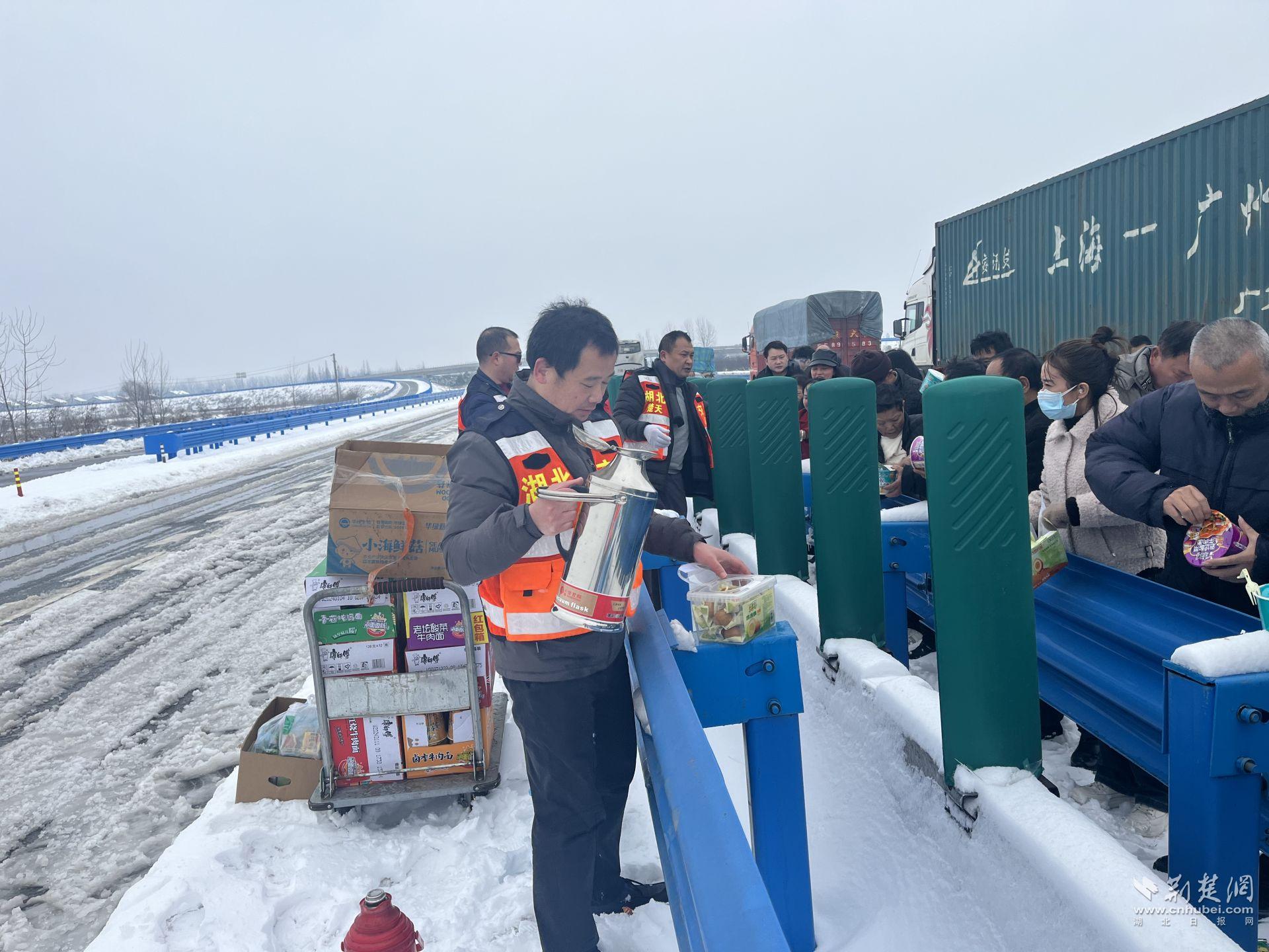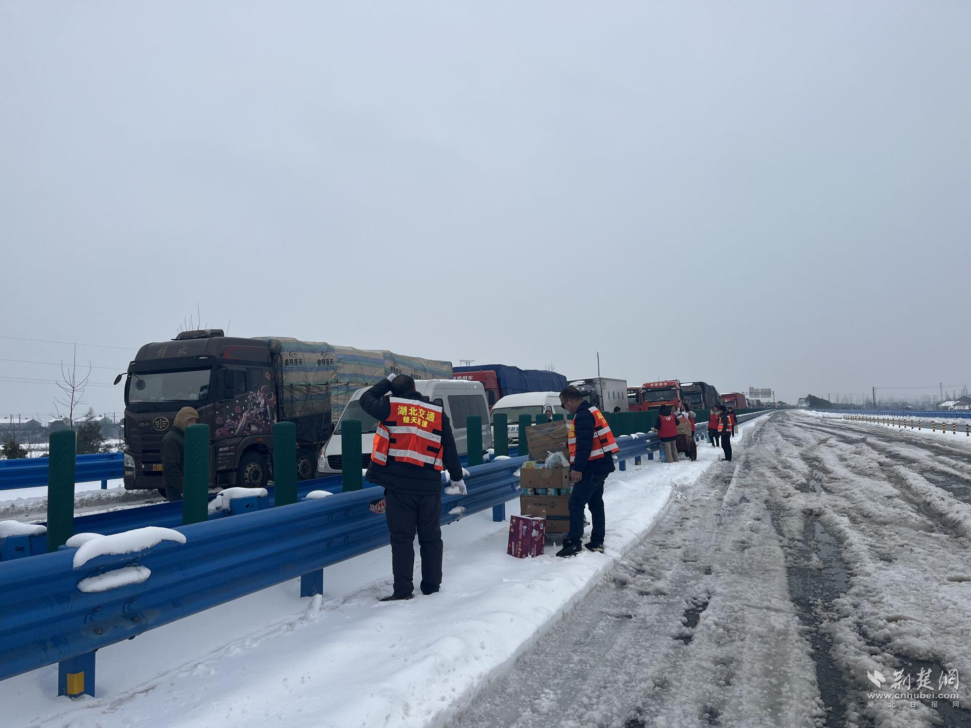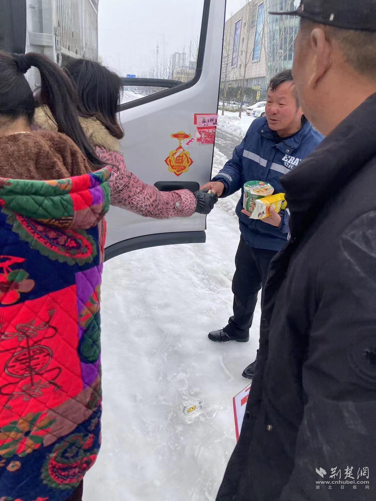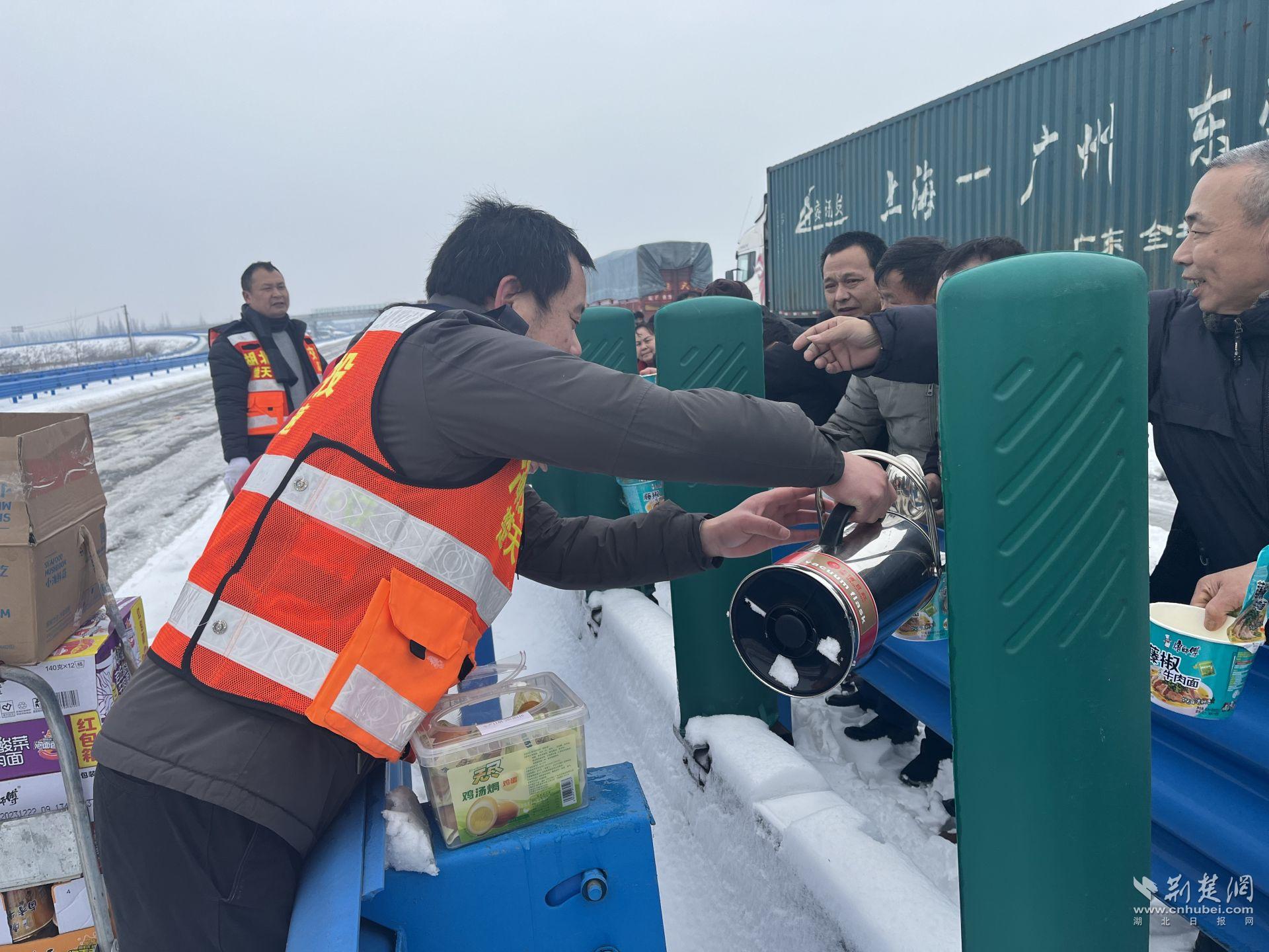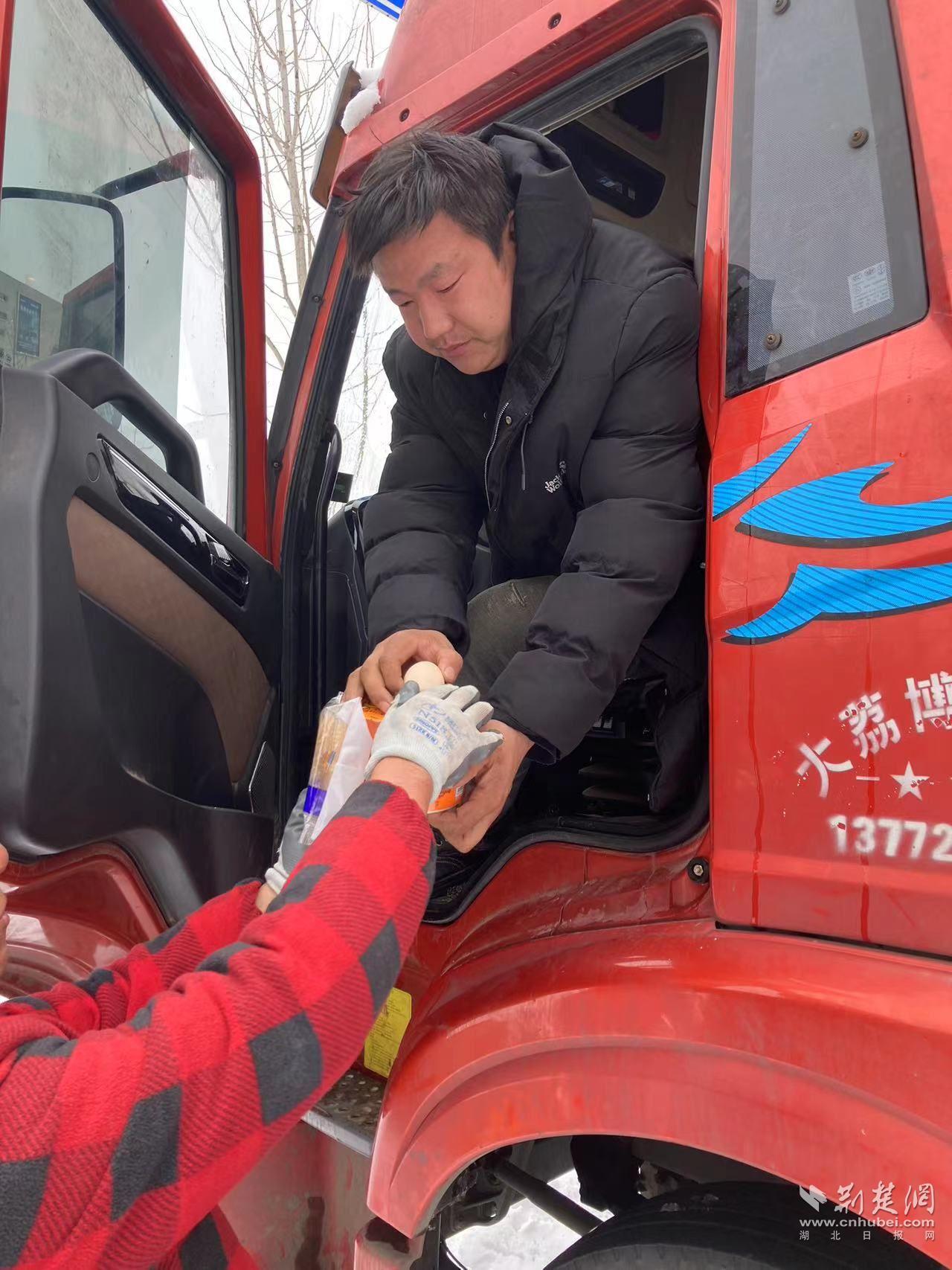 2月4日中午12點(diǎn)45分,荊州區(qū)郢城鎮(zhèn)群眾自發(fā)為小北門(mén)高速入口滯留人員免費(fèi)發(fā)放煮熟雞蛋、快餐面、面包等物資。